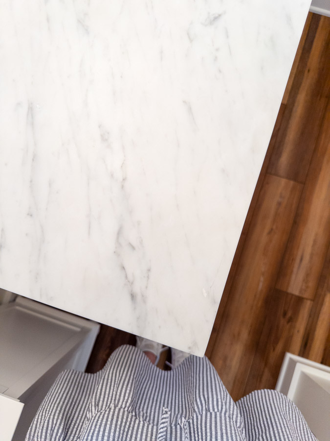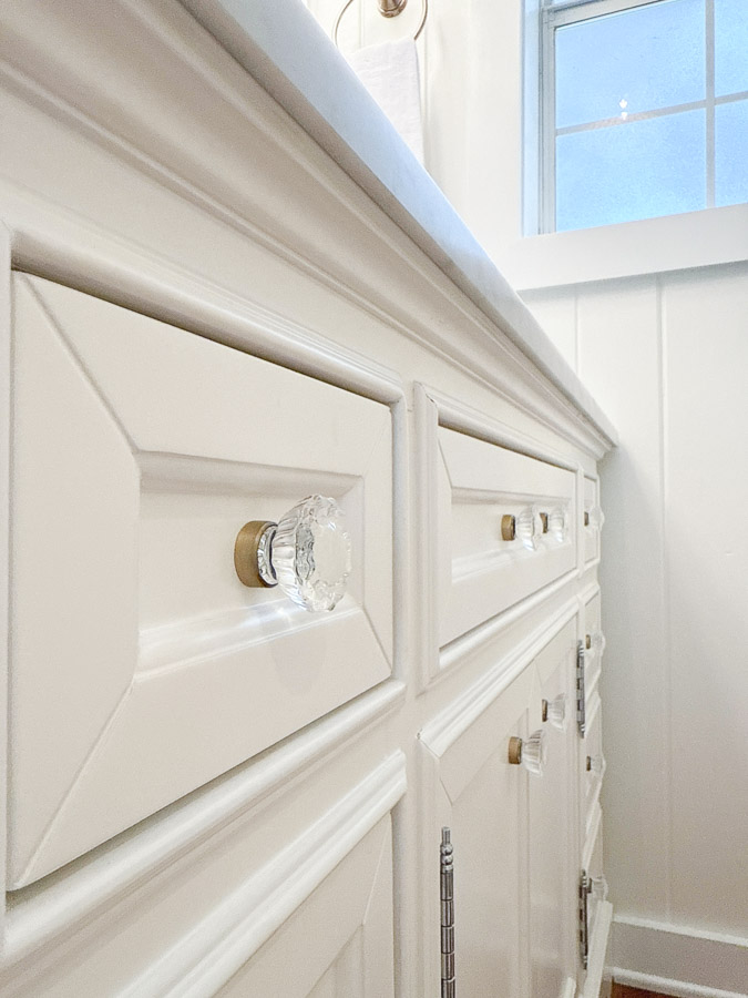 If you love these crystal knobs, check out this French country bathroom renovation I did, where I used the same knobs on another white cabinet.