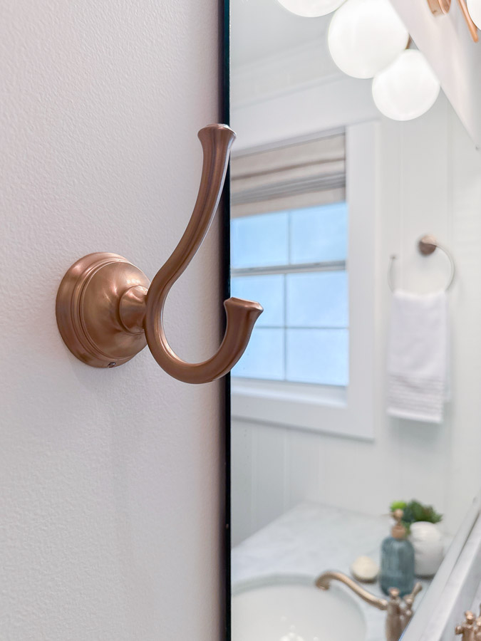 Last, we added lots of hooks and towel bars in the bathroom because remember we are at the beach and you need lots of places to hang beach towels.