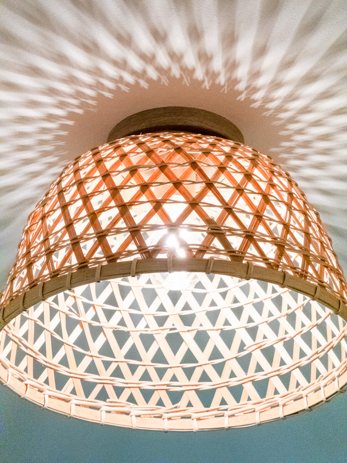Seagrass baskets, a basket light fixture which made the prettiest design on the ceiling.