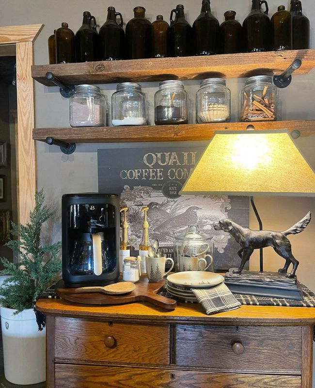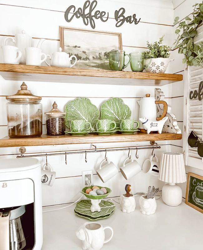 A COFFEE STATION WITH FARMHOUSE DECOR