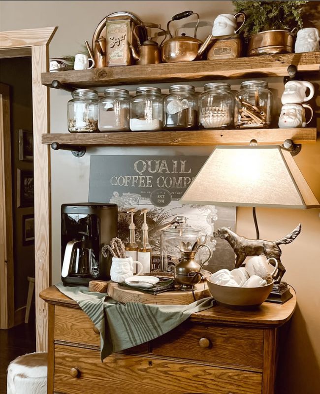 If your farmhouse style is a little more on the rustic side then you will love this next coffee bar.