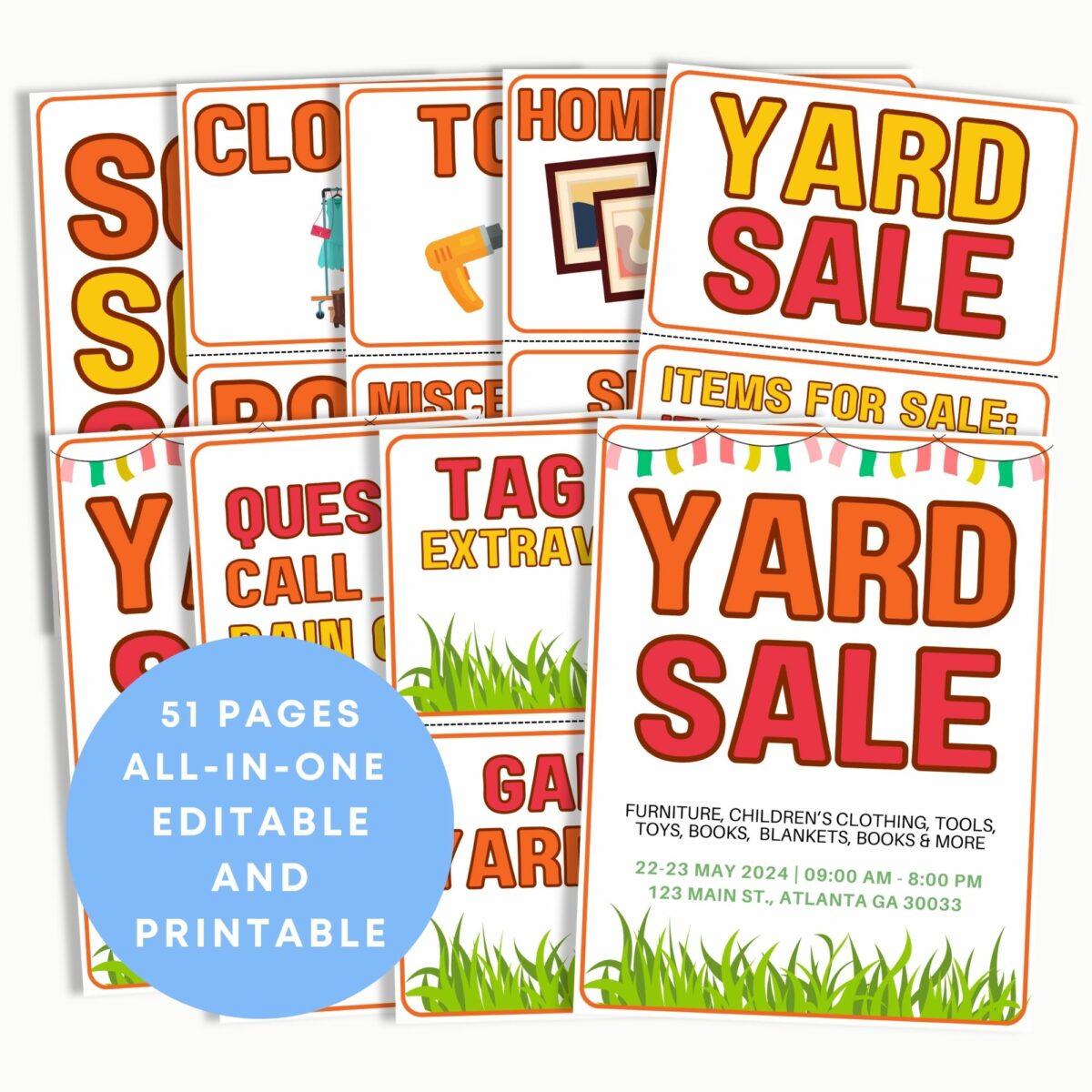Printable Editable PDF Yard Sale Kit for Success