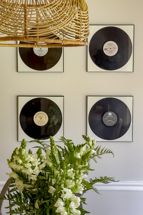 In my daughter's house, she wanted to replace the records on the wall with plates. Here is the before photo.