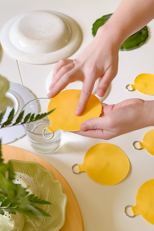 Rub water onto the back of each disc like finger painting. Do this for about a minute, then let the disc rest for five minutes. Rub again with water for a minute and let it sit for 2-3 minutes.
