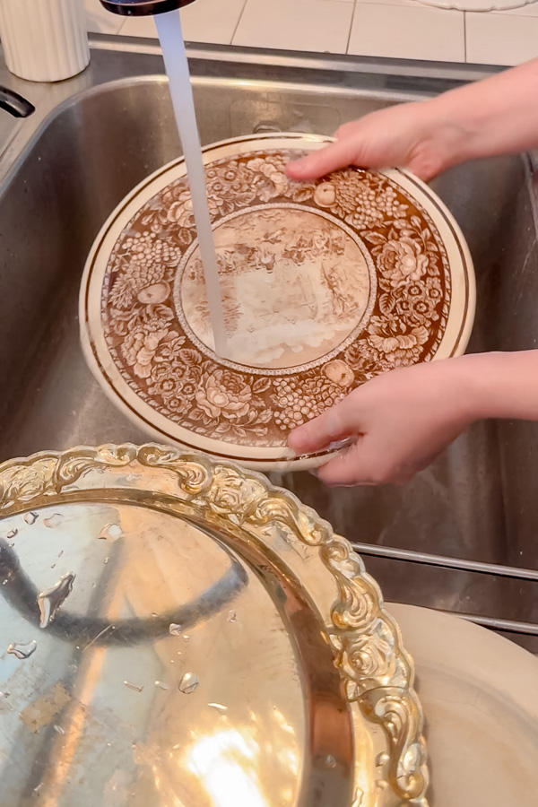 Wash the backs of the plates with hot water and a little dish soap. Dawn dish soap is great because it removes any grease residue. Remove any stickers or leftover residue. Let them dry completely before moving on.