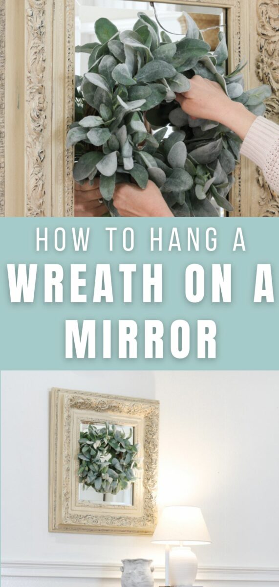 Those are the three of my favorite ways that I hang wreaths on decorative mirrors. The best part is these techniques work on any size mirror and any size wreath.