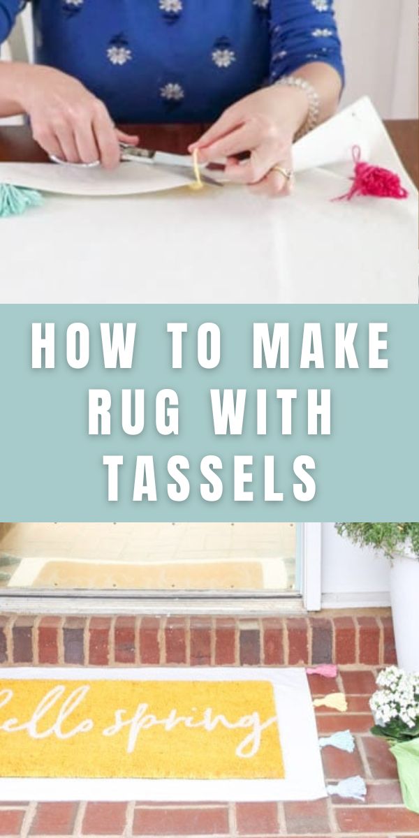 How to make a rug with tassels is an easy DIY rug project that anyone can do. A simple no sewing fabric rug project that you can use inside or outdoors. This rug can be made as a small doormat rug or a larger area rug.