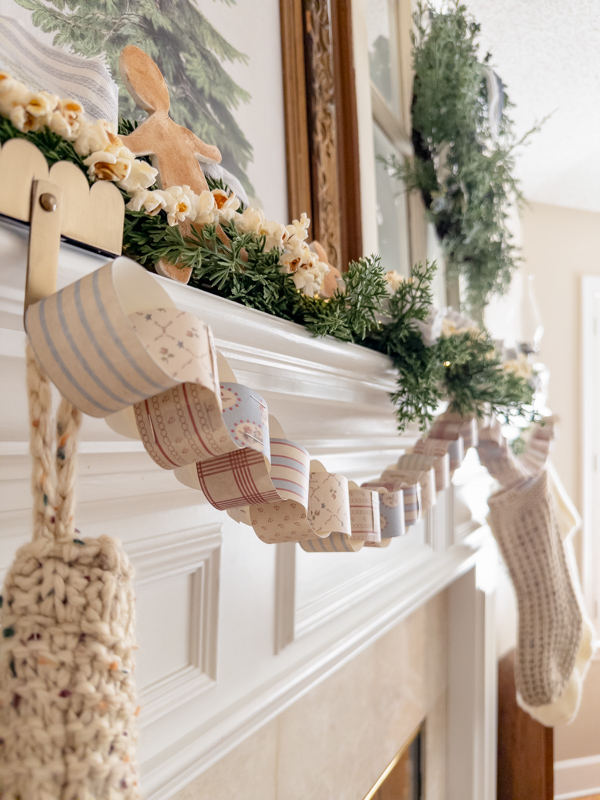 But the most fun element of the mantel is the paper chain. Just like the Ingalls family did for Christmas, we couldn't leave out a paper chain.