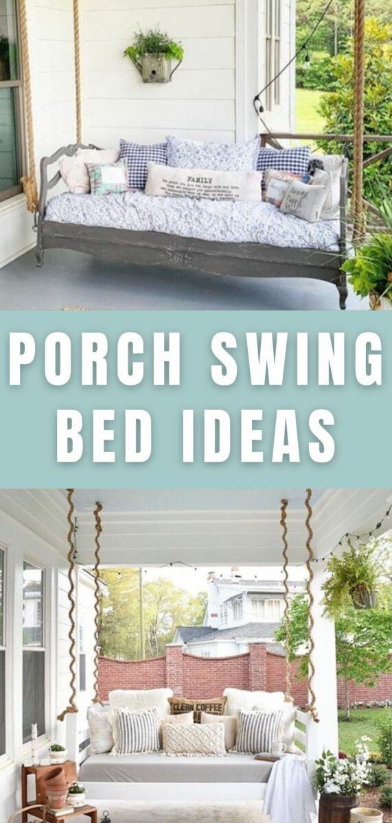 A porch swing and a farmhouse go hand in hand. Imagine now a porch swing bed. One that you can curl up on and have a glass of sweet tea on a gorgeous spring day. They can be everything from a daybed you no longer need inside your home, to a made to order porch bed swing. Are you ready to see what the buzz is all about?