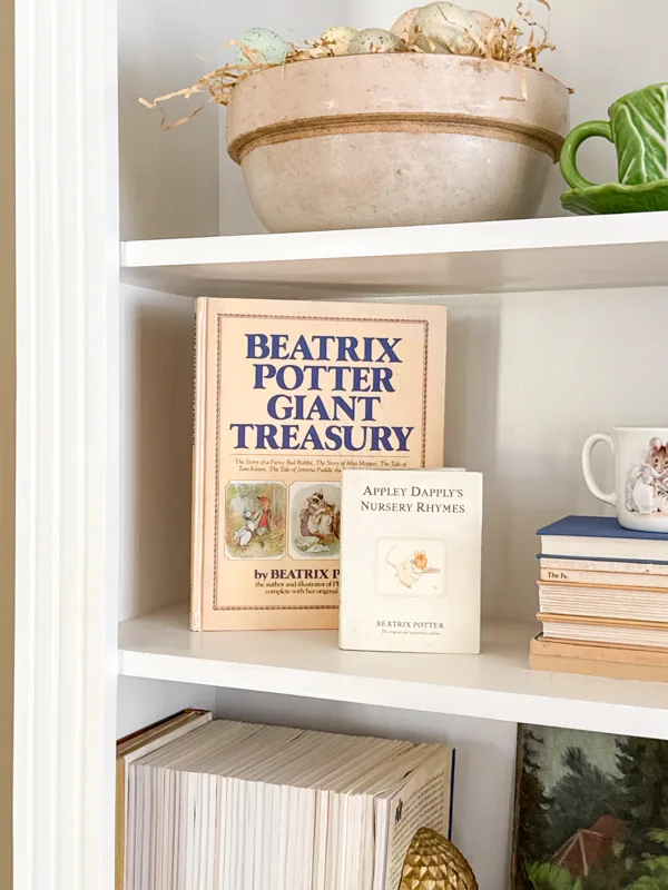 A Bookcase with Vintage Beatrix Potter Spring Charm